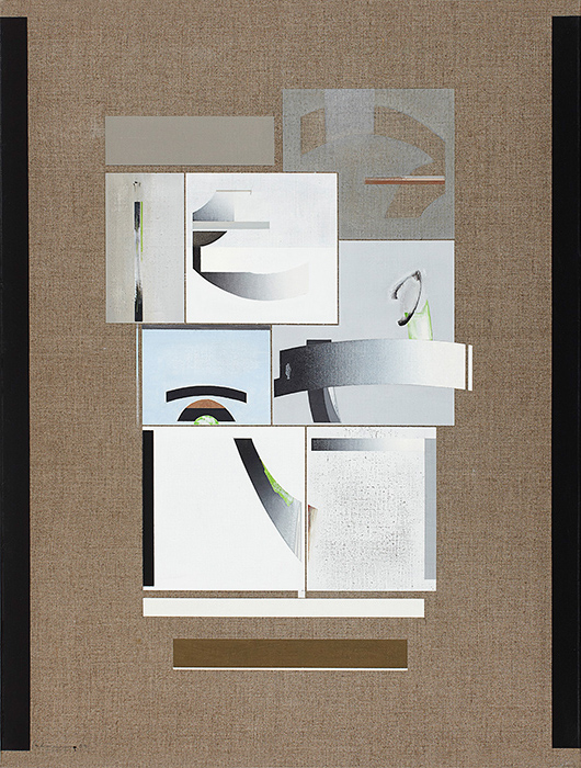Sie setzen sich aus einzelnen Teilen zusammen, die miteinander und mit dem Ganzen korrespondieren. Immer wieder tauchen verschiedene Formen auf der Fläche auf und wieder unter, sie ziehen geradewegs oder schwungvoll bewegt über die Ebenen, halten inne oder lösen sich auf – mitunter öffnen oder verbinden sie sich auch über Grenzen hinweg. Zu sehen sind hier mehrere Bildfragmente im Bild, die trotz aller Brüche in großer Ordnung erscheinen, fest eingebunden in einen abstrakten Zusammenhang. „Formula“, so lautet der Titel einer Serie mit Bildern von Gunther Sehring, die seit den neunziger Jahren in immer wieder neuen Variationen entstehen. Es sind insbesondere Malereien auf Leinwand, die ihren Ursprung in der Collage haben. Mehr noch: es ist gleichsam das Prinzip Collage, das in der Kunst des Malers eine bedeutende Rolle spielt – und dies weit über das Technische hinaus vor allem auch formal und inhaltlich.